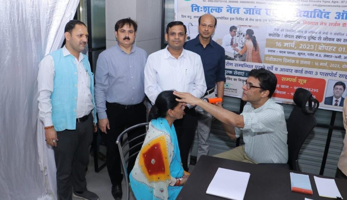आगरा। डाक्टर सोप ग्रुप द्वारा जरूरतमंदों की मदद के लिए हाथ बढ़ाते हुए निःशुल्क नेत्र जाँच एवं मोतियाबिंद आपरेशन शिविर का आयोजन किया गया। शिविर में नेत्र सर्जन डा. असीम अग्रवाल ने लगभग 250 पंजीकृत रोगियों का परीक्षण किया। इस दौरान परीक्षण में 60 लोगों को ऑपरेशन के लिए आवश्यक पाया गया जिनका निःशुल्क मोतियाबिंद आपरेशन जल्द किया जाएगा। इस पहल में सहभागी बने फार्मटैक ओफ्थल्मिक्स द्वारा मरीजों को निःशुल्क दवाइयां वितरित की गईं।