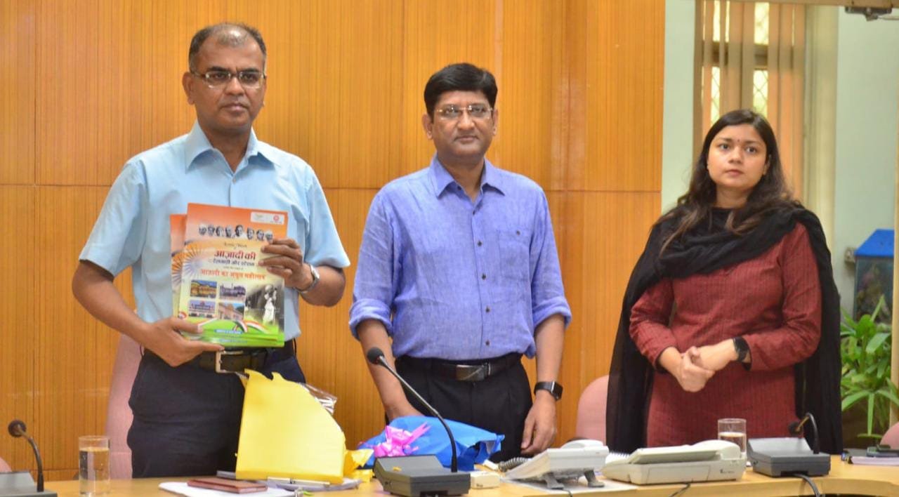 Agra. बुधवार को उत्तर मध्य रेलवे के महाप्रबंधक प्रमोद कुमार की अध्यक्षता में उत्तर मध्य रेलवे मुख्यालय में साप्ताहिक संरक्षा और समयपालन बैठक आयोजित हुई। इस बैठक के प्रारंभ में आज़ादी के अमृत महोत्सव पर आधारित पुस्तिका का विमोचन एनसीआर महाप्रबंधक प्रमोद कुमार, अपर महाप्रबंधक रंजन यादव प्रधान मुख्य कार्मिक अधिकारी अजय कुमार श्रीवास्तव द्वारा किया गया। उसी निर्धारित समय आगरा मंडल में भी मंडल रेल प्रबंधक आनंद स्वरूप और मंडल रेल प्रबंधक झांसी तथा प्रयागराज द्वारा भी इस पुस्तिका का विमोचन किया गया।
