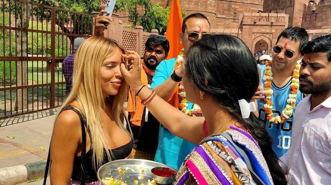 Agra. हिंदूवादी संगठन बजरंग वाहिनी की ओर से हिंदू नव वर्ष को हर्षोल्लास के साथ मनाया गया। नव वर्ष को मनाने के लिए बजरंग वाहिनी के कार्यकर्ता आगरा किला पहुंचे। यहां पर बजरंग वाहिनी के कार्यकर्ताओं ने देशी विदेशी सैलानियों का तिलक लगाकर स्वागत किया, साथ ही उन्हें हिंदू नव वर्ष की शुभकामनाएं भी दी।