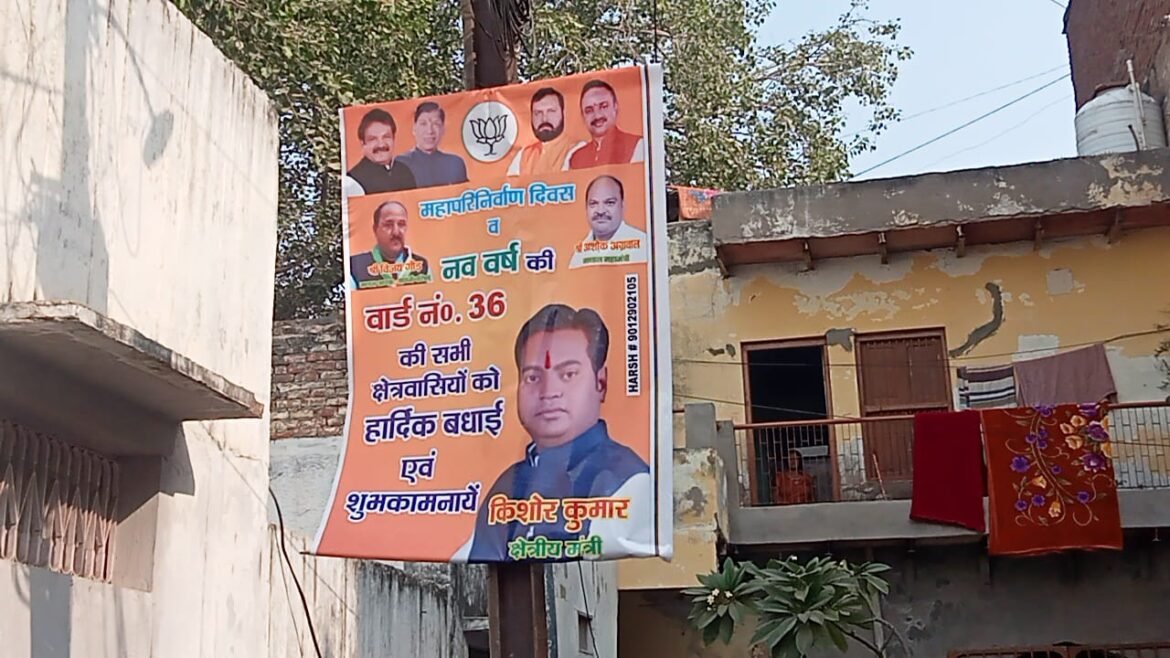 बता दें कि नगर निगम के वार्डों का आरक्षण अभी बदला है जिसके बाद वार्ड 36 की सीट अनुसूचित हुई है। इसके चलते यहां पर राजनीतिक घमासान मचा हुआ है। आपको बताते चलें कि भाजपा अनुसूचित मोर्चा के क्षेत्रीय मंत्री भी इस दौड़ में शामिल हैं। इसीलिए उन्होंने पूरे क्षेत्र में नए वर्ष और बाबा साहब के परिनिर्वाण दिवस पर बैनर लगवा दी है लेकिन इसमें भी वह बड़ी गलती कर बैठे हैं। महापरिनिर्वाण दिवस की बधाइयां नहीं बल्कि श्रद्धांजलि दी जाती है।