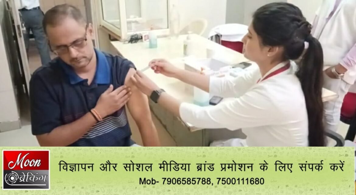 Agra. जन्माष्टमी पर्व की धूम चारों ओर दिखाई दे रही है। लोगों ने तो भगवान श्रीकृष्ण की उपासना और पूजा अर्चना करने हेतु व्रत रखा हुआ है। लोग व्रत रख धार्मिक कार्य में जुटे हुए हैं। वहीँ दूसरी ओर जिला अस्पताल की वैक्सीनेशन सेंटर पर ऐसे भी लोग आज देखने को मिले जिन्होंने व्रत रखा हुआ है और कोरोना संक्रमण से बचने के लिए वैक्सीन (Precaution Dose) भी लगवाने के लिए आए। वैक्सीनेशन सेंटर में मौजूद लोगों ने सभी लोगों को वैक्सीन लगाई।