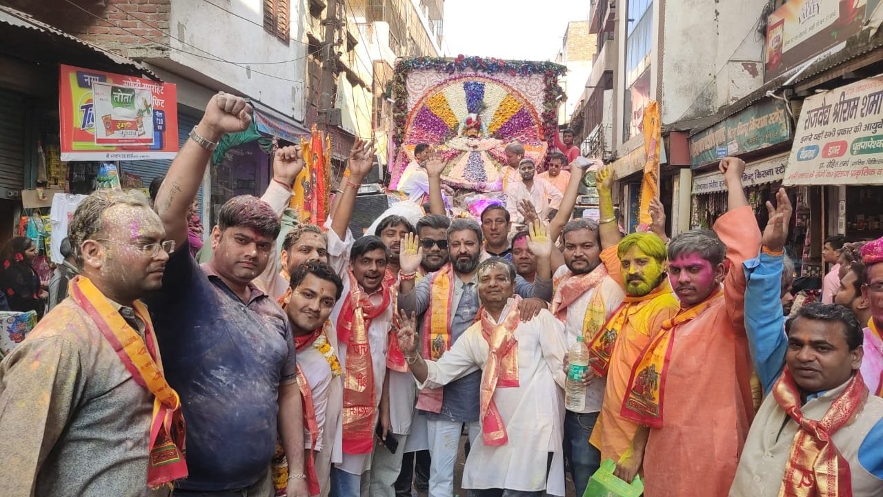 आगरा। हाथों में श्याम बाबा के नाम के 5000 निशान लिए सैकड़ों श्रद्धालू और आकर्षक रूप से सजा खाटू नरेश का भव्य डोला। बैंड बाजों की भक्तिमय स्वरलहरियां और देवी देवताओं की आकर्षक 20 झांकियां। कुछ ऐसा ही भक्ति से परिपूर्ण नजारा था आगरा नरेश श्याम भक्त सेवा समिति रजि. द्वारा आयोजित भव्य फागोत्सव यात्रा का। जिसका शुभारम्भ श्रीमनःकामेश्वर पर नितिन कोहली व समिति के सदस्यों ने श्याम बाबा की आरती कर किया।
