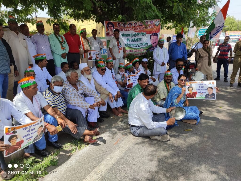 Agra. अखिल भारतीय कांग्रेस कमेटी के राष्ट्रीय अध्यक्ष सोनिया गांधी के आव्हान पर जिला कांग्रेस कमेटी एवं शहर कांग्रेस कमेटी के नेतृत्व में देश में बढ़ती मंहगाई, पेट्रोल, डीजल, गैस के दामों में लगातार होती मूल्यवृद्धि को लेकर कांग्रेस कार्यकर्ताओं ने वाल्मीकि वाटिका के पास धरना दिया। कांग्रेस कार्यकर्ताओं ने थाली-ताली बजाकर और मोटरसाइकिल पर माला चढ़ा कर विरोध प्रदर्शन किया।