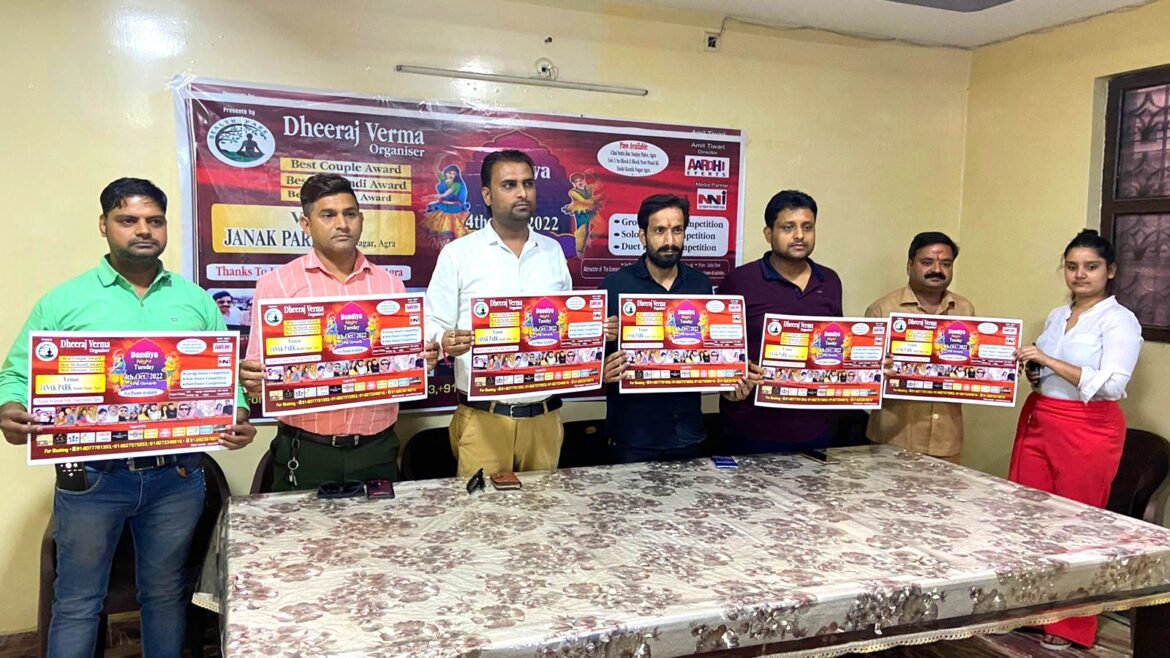 आगरा। ग्रीन पार्क ग्रुप व आरोही संस्था द्वारा नवरात्रि के अंतिम दिन जनक पार्क, कमला नगर में डांडिया नाईट कार्यक्रम का आयोजन किया जा रहा है। जिसका पोस्टर विमोचन व प्रेस वार्ता आज घटिया स्थित होटल में किया गया।