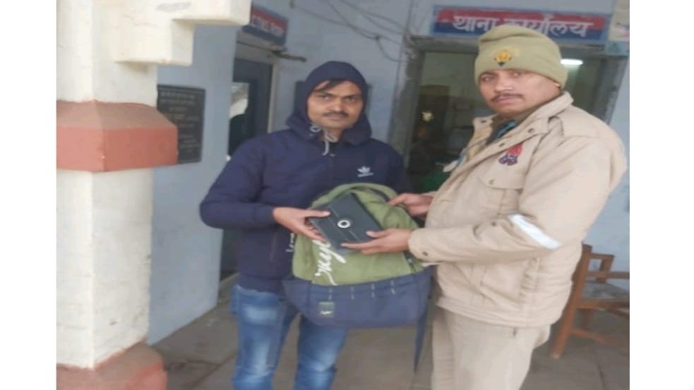 Agra. जीआरपी कंट्रोल रूम आगरा को दूरभाष से सूचना मिली कि ट्रेन 12189 महाकौशल एक्सप्रेस कोच एस/4 सीट पर कॉलर अभिषेक जैन मोब 903948427 का अमेरिकन ट्यूरिस्टर का हरे रंग का पिट्ठू बैग छूट गया है। इस सूचना पर जीआरपी कैंट एक्टिव हुई और ट्रेन से उस बैग को बरामद कर लिया। इस पर कॉलर को सूचना दी गयी। जीआरपी आगरा कैंट ने कॉलर के रिश्तेदार को वो बैग सुपुर्द कर दिया गया।