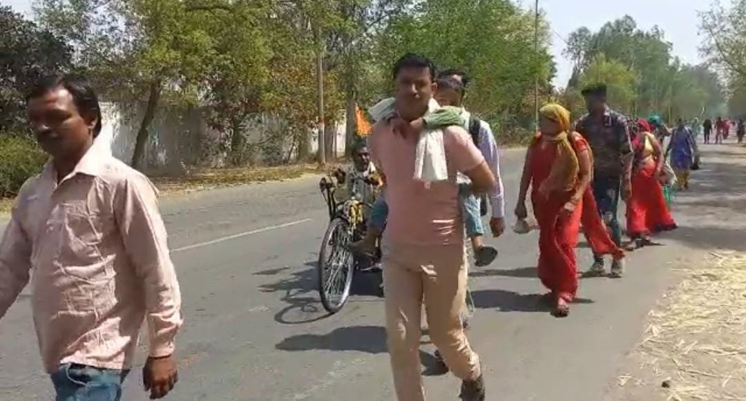 Agra. सुबह होते ही सूरज की तपिश अपना असर दिखा रही थी। जैसे-जैसे सूरज चढ़ रहा था, सूरज की तल्खी बढ़ती जा रही थी लेकिन ऐसे में भी सड़क पर पैदल पदयात्रियों का रैला आगे बढ़े जा रहा था। ‘चलो बुलावा आया है माता ने बुलाया है’ के जयकारे लग रहे थे। माथे पर लाल चुनारी बांधे छोटे-छोटे बच्चे अपने माता-पिता का हाथ थामे कदम से कदम मिलाकर चल रहे थे तो वहीं विकलांग अपनी प्राइस साइकिल से ही मां कैला देवी के दर्शन के लिए जाते हुए दिखाई दिए। यह नजारा पृथ्वीनाथ फाटक से जयपुर हाइवे का था। सड़क पर कैला देवी की जात को जाने वाले भक्तों की भीड़ उमड़ रही है। भक्तों में उत्साह था क्योंकि 2 साल बाद वह मां केला देवी के दर्शन हेतु पदयात्रा पर निकले थे।