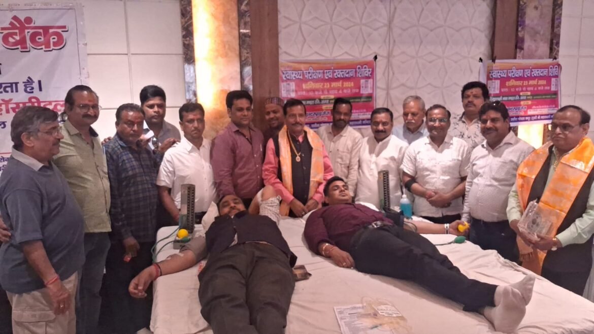 आगरा। देशभक्ति तभी सार्थक होती है जब जनसेवा का भी भाव उसमें समाहित हो। इसी भाव को लेकर श्रीमहालक्ष्मी भक्त मंडल सेवा और भक्ति के पथ पर अग्रसित है। इन शब्दों के साथ अध्यक्ष संजय अग्रवाल ने सभी अतिथियों का स्वागत किया। शनिवार को वाटरवर्क्स स्थित अग्रवन (प्रथम तल) पर शहीदी दिवस के उपलक्ष्य में श्रीमहालक्ष्मी भक्त मंडल द्वारा स्वास्थ्य परीक्षण एवं रक्तदान शिविर लगाया गया।