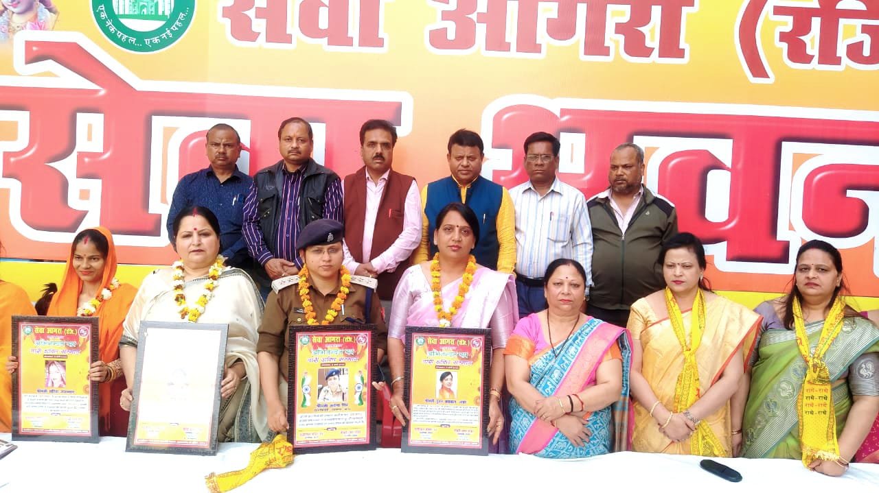 आगरा। आगरा की प्रमुख सामाजिक संस्था ‘सेवा आगरा’ द्वारा अंतर्राष्ट्रीय महिला दिवस पर मंगलवार दोपहर सुल्तानगंज पुलिया के निकट सेवा भवन पर समारोह आयोजित कर ताज नगरी की चार महिलाओं को नारी शक्ति की उपाधि से सम्मानित किया गया।