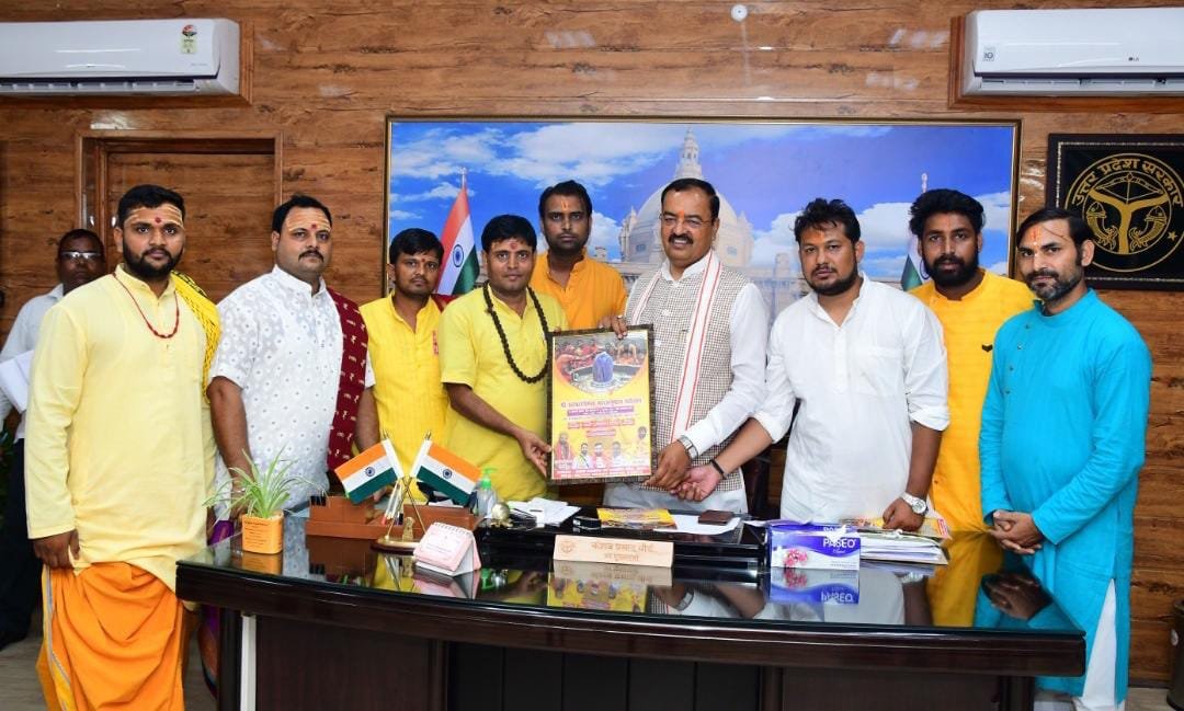 संस्था के अध्यक्ष अमित तिवारी, सचिव रवि तिवारी, अनुराग सिंह, मोहित शर्मा व मनीष द्वारा लखनऊ में उपमुख्यमंत्री आवास पर उपमुख्यमंत्री केशव प्रसाद मौर्य और ब्रजेश पाठक के साथ आचार्य दैवज्ञ बृज मोहन दीक्षित, आचार्य वीरेंद्र, आचार्य मनीष, आचार्य पवन शास्त्री आदि ने महानुष्ठान के पोस्टर का विमोचन किया।