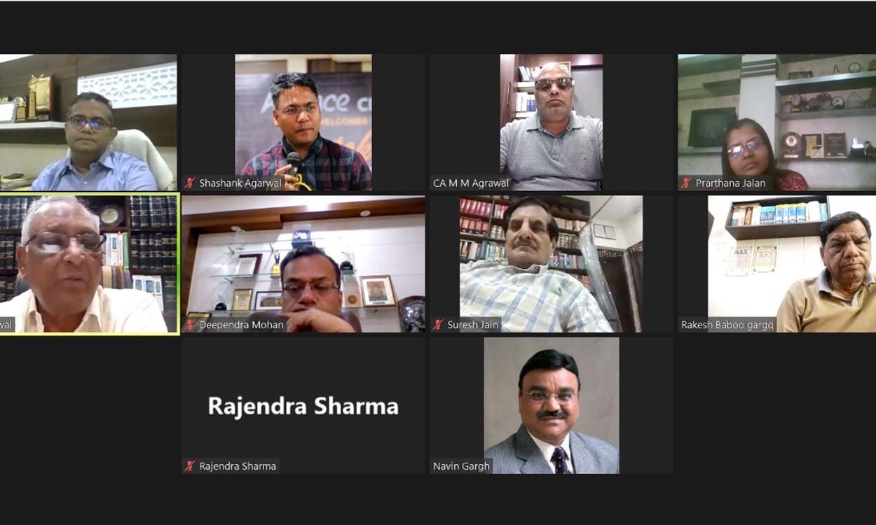 वर्चुअल मीटिंग में सीए साहिब सत्संगी, नवीन गर्ग, राजेन्द्र अग्रवाल, शशांक अग्रवाल शामिल रहे।