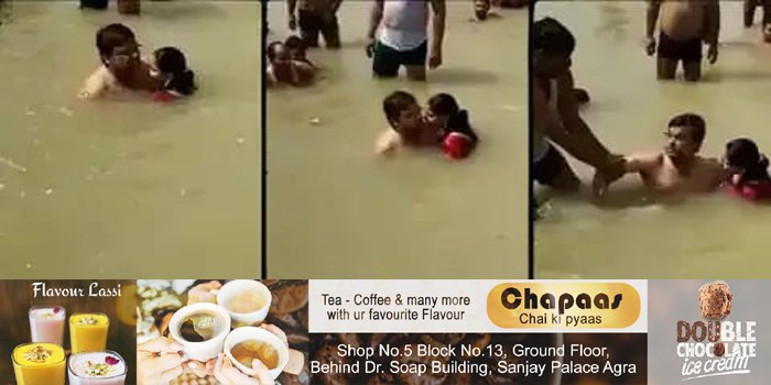 पहले तो लोगों ने इन्हें इग्नोर किया लेकिन वहां मौजूद एक शख्स ने रोमांस में बाधा डाल दी और उस शख्स की बनियान पकड़कर उसे नदी से बाहर खींच लिया। फिर क्या था, लोग तो पहले से तमाशा देख रहे थे सो वो भी जमा हो गए। इसके बाद लोगों ने उस शख्स पर थप्पड़ों की बारिश कर दी।