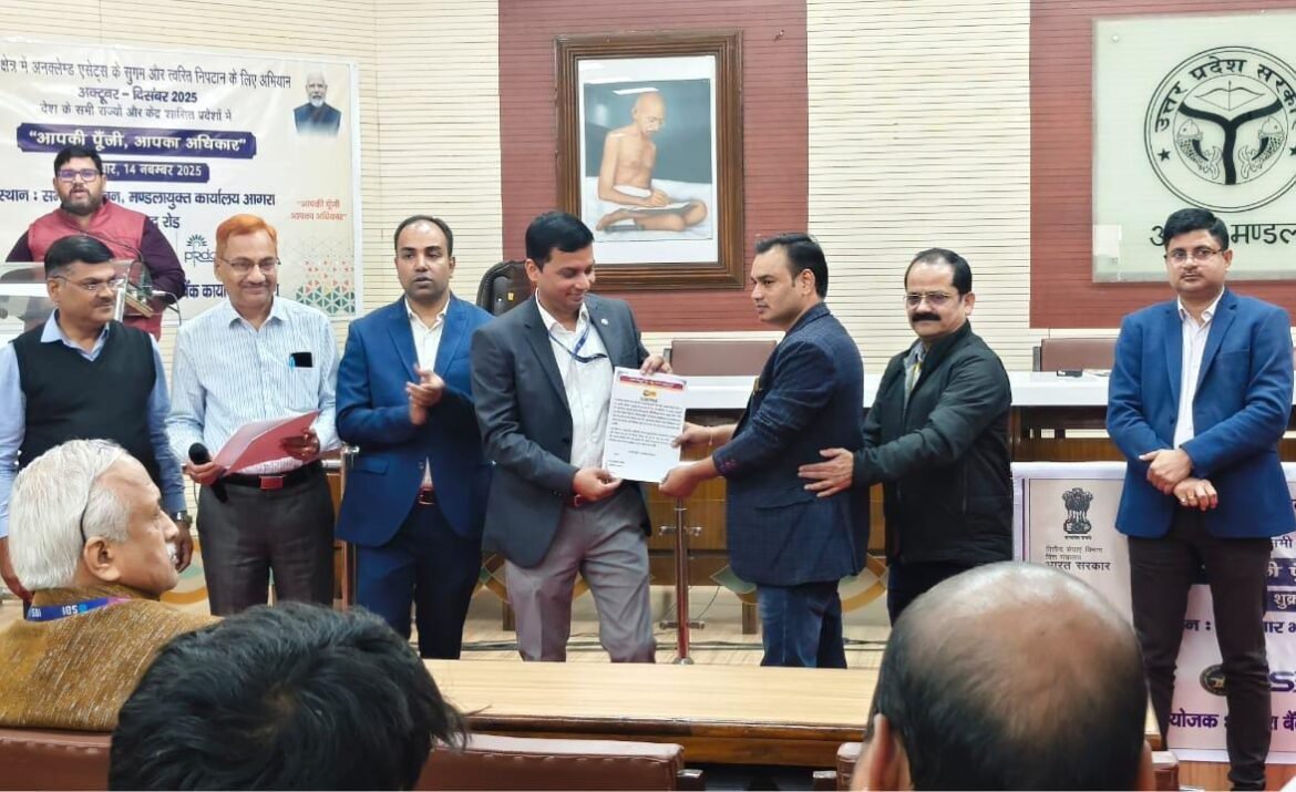 आगरा. एलडीएम केनारा बैंक ऋषिकेश बनर्जी ने अवगत बताया कि डीएफएस, वित्त मंत्रालय भारत सरकार, आरबीआई के तत्वावधान में आज दिनांक 14 नवम्बर को मण्डलायुक्त सभागार में सफलता पूर्वक शिविर का आयोजन किया गया। जिसमें सभी संबंधित बैंकों, एलआईसी आदि के समाधान स्टॉल लगाये गए तथा जागरूकता सत्र का आयोजन हुआ।