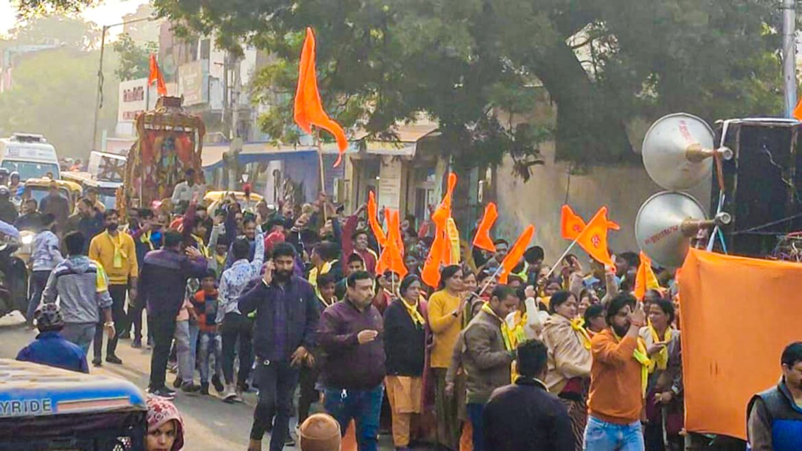 Agra. 22 जनवरी को अयोध्या में देश के प्रधानमंत्री नरेंद्र मोदी राम लला की प्रतिमा की प्राण प्रतिष्ठा करेंगे। उससे पहले ही देश में उत्साह का माहौल देखने को मिल रहा है। 22 जनवरी को आगरा से अधिक से अधिक लोग अयोध्या पहुँचे इसके लिए आरएसएस और विश्व हिंदू परिषद के कार्यकर्ता अक्षय पात्र कलश को लेकर रैली निकाल रहे हैं।