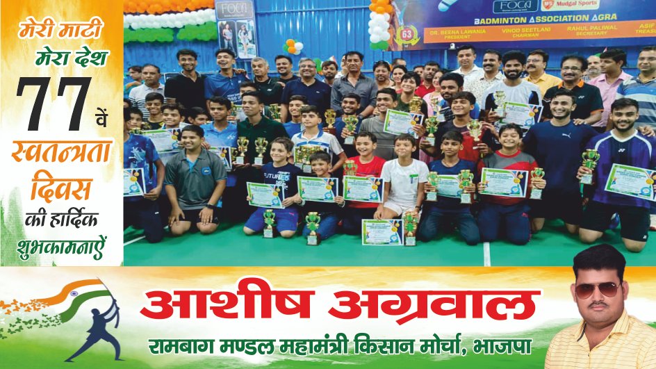 इस अवसर पर आगरा बैडमिंटन संघ के अध्यक्ष डॉ बीना लवानिया, चेयरमैन विनोद सीतलानी, सचिव राहुल पालीवाल, कोषाध्यक्ष आसिफ अली, सह सचिव नंदी रावत एवं बेडमिंटन संघ के सभी पदाधिकारी उपस्थित रहे।