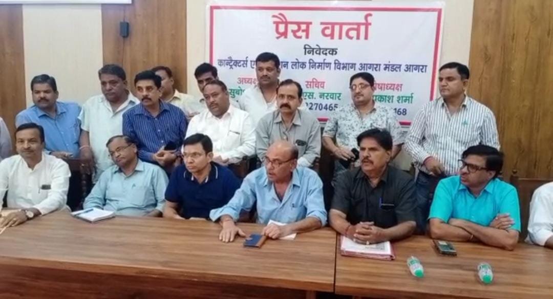 आगरा। ठेकेदार संघ लोक निर्माण विभाग आगरा मंडल आगरा के पदाधिकारियों द्वारा प्रेस वार्ता एम डी जैन कॉलेज सभागार हरी पर्वत पर की गयी। प्रेसवार्ता में ठेकेदारों ने लंबित भुगतान सहित कई अन्य समस्याओं का निस्तारण नहीं होने तक निविदाओं का बहिष्कार करने का निर्णय जारी रखा है।