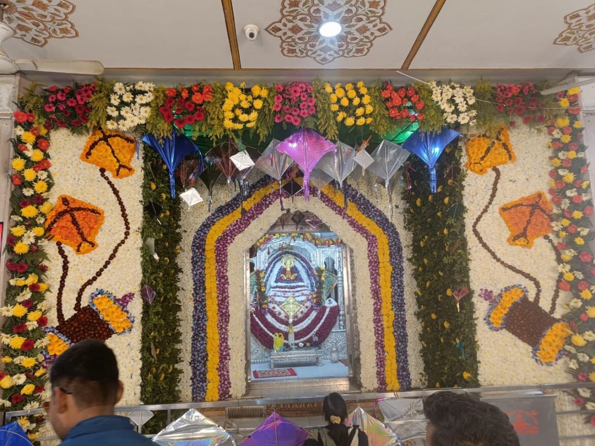 आगरा। मकर संक्रांति के अवसर पर जीवनी मंडी स्थित श्रीखाटू श्याम जी मंदिर में रंग बिरंगी पतंगों से सजावट की गयी। ठाकुर जी के दरबार को विभिन्न आकार और रंगों की पतंगों से सजाया गया। हजारों भक्तों ने सुबह से रात तक पतंगें अर्पित कीं।