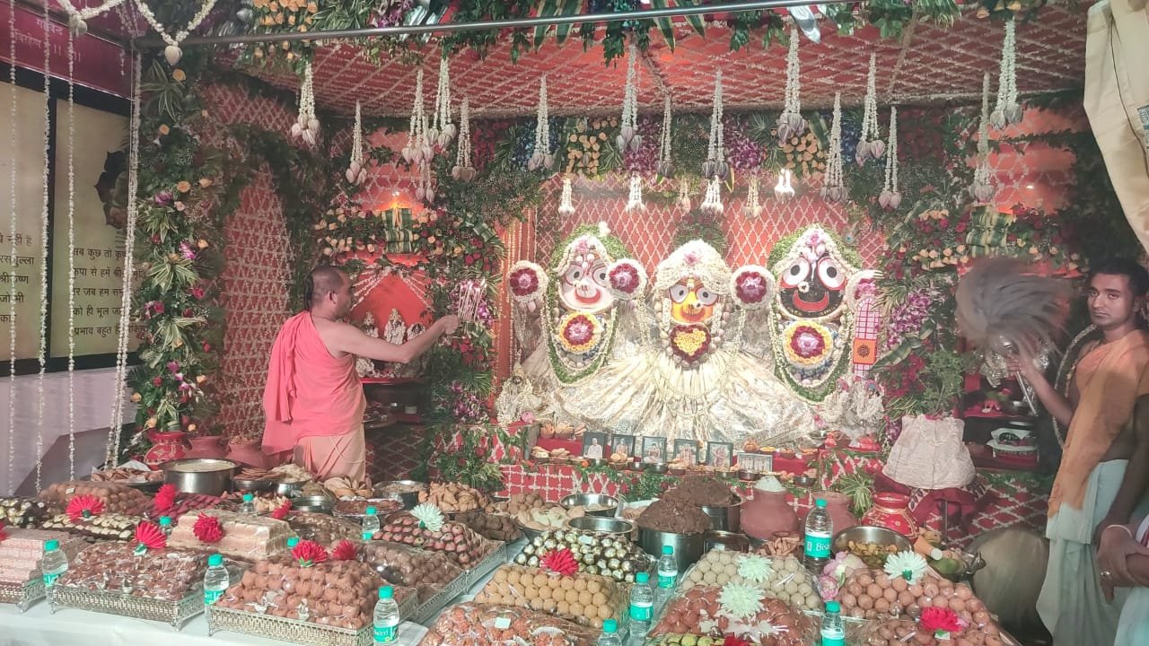 आगरा। शंखनाद के साथ भगवान के पट खुले तो हर भक्त के मुख से हरि बोल के जयकारे गूंजने लगे। श्रद्धा से भरी आंखें नवयौवन भेष में श्रीजगन्नाथ जी, बहन सुभद्रा व भाई बलभद्र के 15 दिन बाद दर्शन पाकर एकटक निगाह से निहारते रहे। दोनों हाथ ऊपर उठाकर हरे राम हरे कृष्णा… के कीर्तन से मंदिर परिसर गुंजायमान हो उठा। श्वेत रंग की पोशाक धारण किए और मोगरे के फूलों से सजे श्रीजगन्नाथ जी के दर्शन को हर भक्त व्याकुल था। बीमारी से उठे श्रीहरि के लिए आज हर भक्त अपनी अपनी रसोई से स्वादिष्ट व्यंजन पकाकर लाए। मंदिर की रसोई में 56 प्रकार के चावल पकाए गए।
