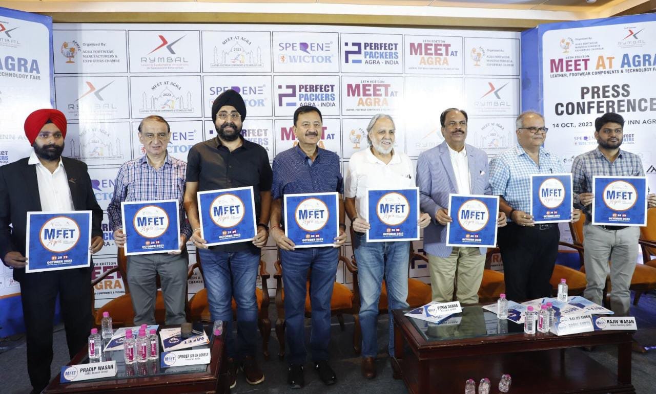 आगरा। फुटवियर ट्रेड के महाकुम्भ कहे जाने वाले मीट एट आगरा के पन्द्रहवें संस्करण की तैयारियों को अंतिम रूप दिया जा चुका है। इस भव्य आयोजन में क्या खास होगा, कितने देशों की भागीदारी होगी ऐसे तमाम सवालों के जवाब में शनिवार को होटल हाॅलिडे इन में आयोजित प्रेसवार्ता में सामने आये। फुटवियर मैन्युफेक्चरर्स एंड एक्सपोर्टर्स चैम्बर (एफमेक) द्वारा सींगना स्थित आगरा ट्रेड सेंटर पर आयोजित हो रहा तीन दिवसीय फेयर मीट एट आगरा 27 अक्टूबर से 29 अक्टूबर तक चलेगा।