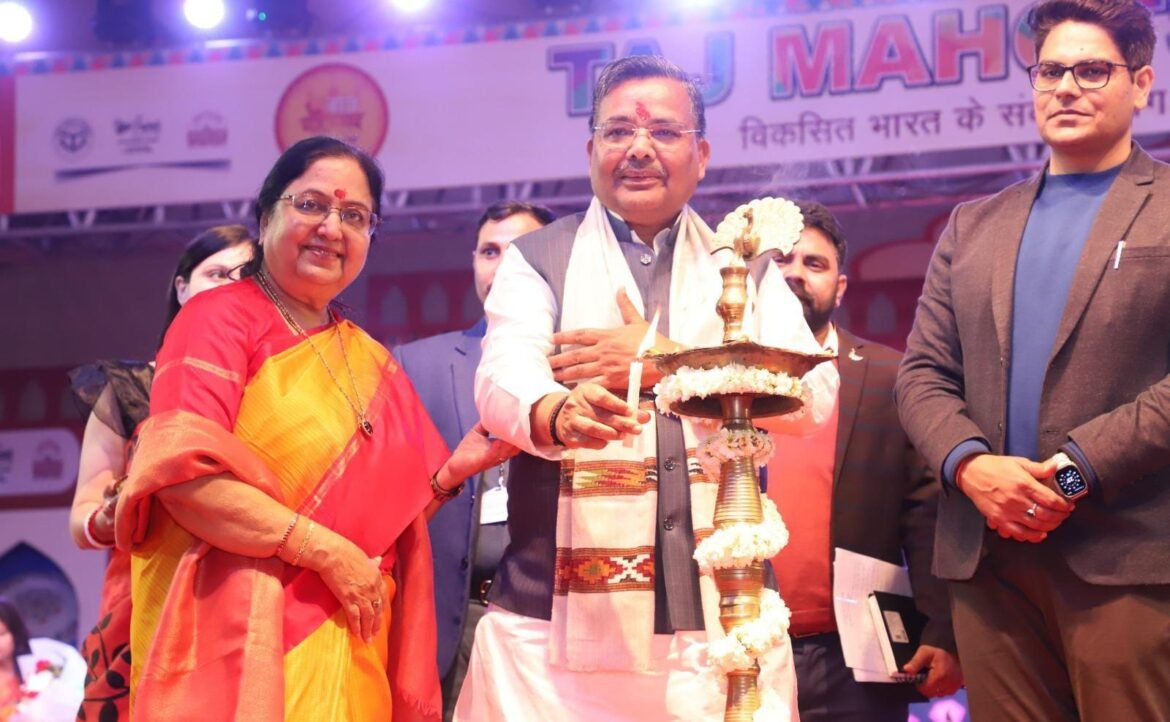 पर्यटन मंत्री जयवीर सिंह ने अपने संबोधन में कहा कि बत्तीस साल से तमाम उतार चढ़ाव के बीच भव्य ताज महोत्सव जारी है, यहां देश के विभिन्न राज्यों के चार सौ से अधिक स्टॉल, यूपी के विभिन्न जनपदों के ओडीओपी उत्पादों की स्टॉल,के साथ शहरी, ग्रामीण सभी अंचलों के शिल्पियों को स्थान मिला है, पीएम मोदी व मुख्यमंत्री योगी जी का ये लगातार प्रयास है की मार्केट के लिए मजबूत उत्पाद दें, अपने स्थानीय उत्पादों को बेहतरीन मार्केट प्लेटफार्म दें ओडीओपी के अंतर्गत यही प्रयास है। संस्कृति और समृद्धि के थीम पर महोत्सव आयोजित किया गया है, कोई भी देश या प्रदेश जो अपनी विरासत को नहीं संभाल पाता वो तरक्की नहीं करता, यूपी की सरकार विरासत के संरक्षण, अपनी संस्कृति को विदेश तक पहुंचाने का लगातार कार्य कर रही है, विरासत, धर्म, संस्कृति हेतु पांच सौ वर्षों के त्याग तपस्या से अयोध्या में राम मंदिर बना, राम लला अपने मूल स्थान पर विराजमान हुए संस्कृति की समृद्धि का इससे बेहतर कोई कुछ नहीं हो सकता। अयोध्या में भव्य राम मंदिर बना हम और आप, हमारी पीढ़ी सौभाग्यशाली है ये हमारे दौर में हुआ।