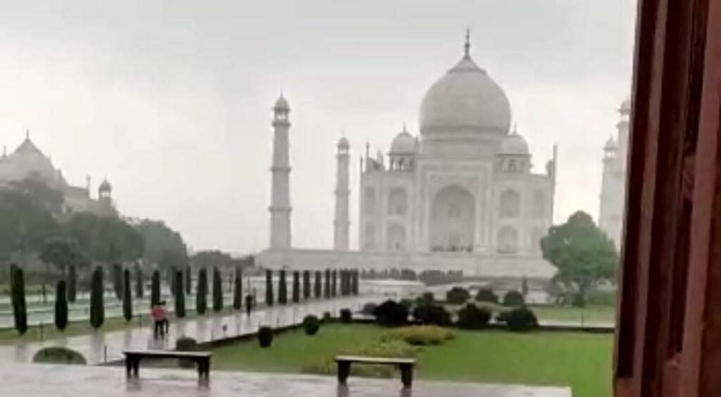 गुरुवार सुबह से ही रिमझिम रिमझिम बारिश हो रही थी। ऐसे में मोहब्बत की निशानी ताजमहल को देखने के लिए आने वाले पर्यटकों की भी कमी नहीं थी। पर्यटक रिमझिम बारिश में भीगते हुए मोहब्बत की निशानी ताजमहल का दीदार कर रहे थे। ताजमहल आने वाले हर जोड़े के दिल में भी यह ख्वाहिश होती है कि वो ताजमहल आये और उसे बारिश का आनंद मिल जाए।